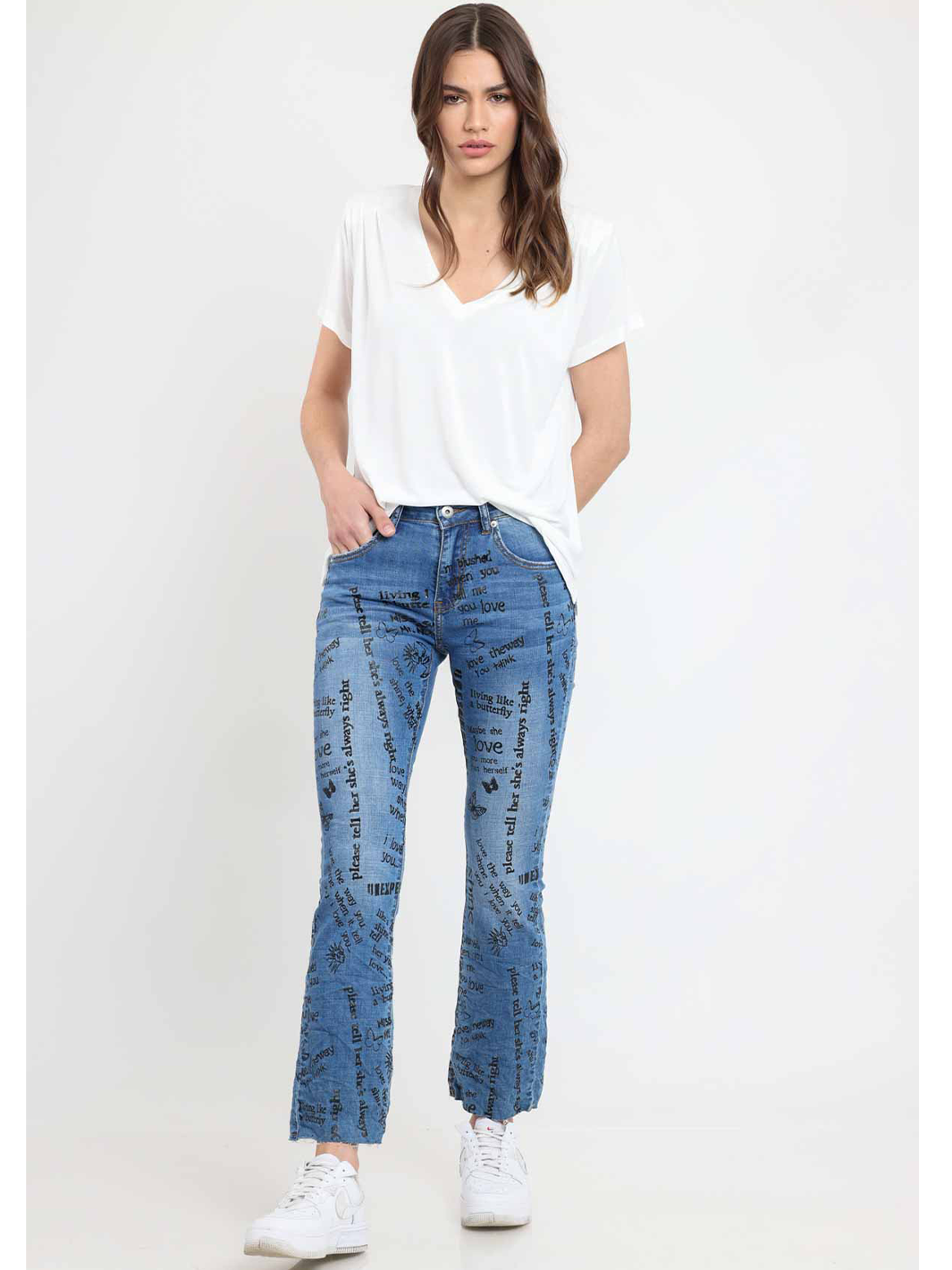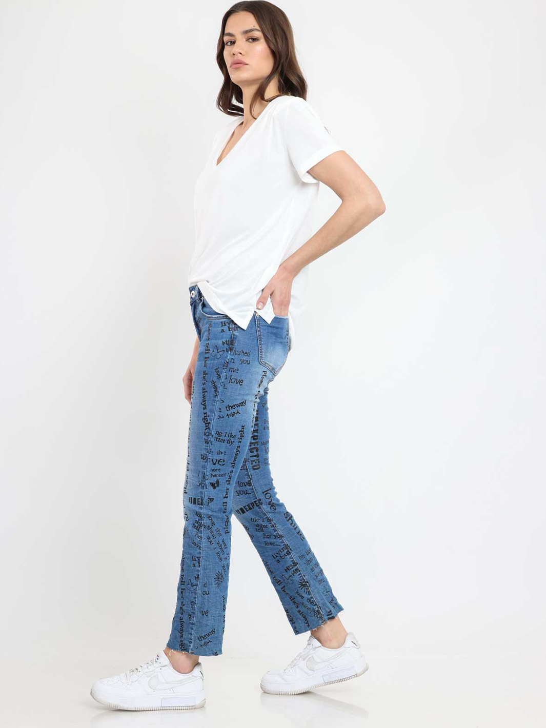 Unique graffiti-style sayings add a super fun touch — a jean that speaks for itself. Finished with contrast stitching, subtle scratching on the coin pocket, belt loops, and a zip fly, the Evelin is the perfect mix of personality and style.