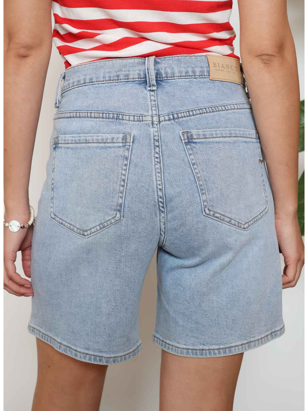 Cut in a light blue wash with subtle scratching details on the left pocket and right waistband, this short is easy to wear and even easier to style. Finished with a five-pocket design, belt loops, and soft stretch denim for everyday comfort.
